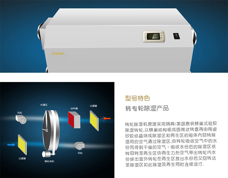 安詩曼是專業轉輪除濕機生產廠家,主要產品有工業除濕機,高溫烘干機,轉輪除濕機,低溫除濕機,吊頂除濕機,商用抽濕機,商用除濕機,工業抽濕機,工業干燥機等產品